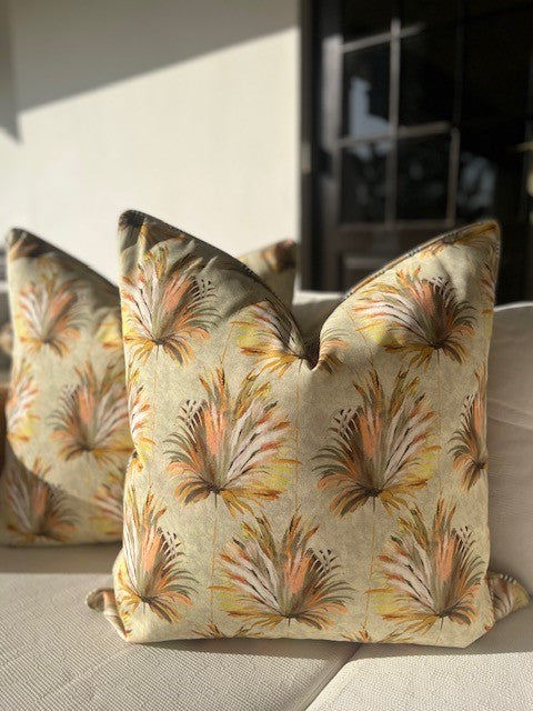 Brighten up your home & add texture with this hand embroidered Palm detail scatter cushion.